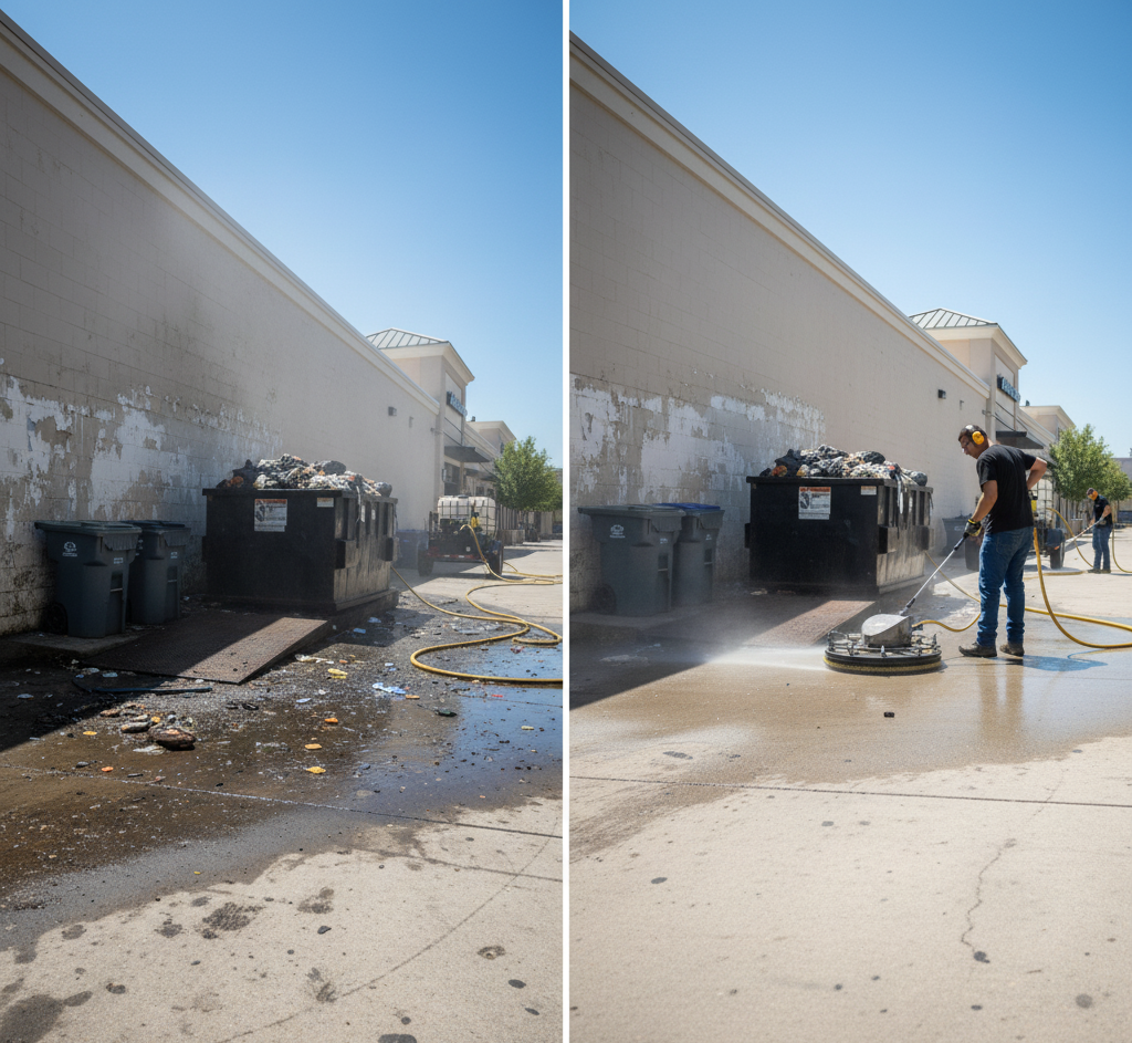 Professional pressure washing restores hard surfaces and removes stubborn stains from high-traffic areas.